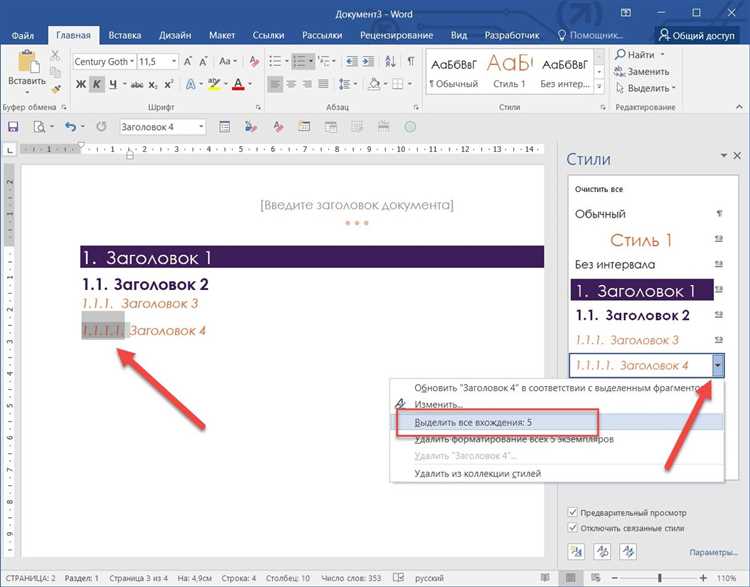 Если вы хотите изменить существующую нумерацию заголовков, выделите весь текст, содержащий заголовки, затем перейдите на вкладку «Главная» и в разделе «Параграф» выберите кнопку «Мультинумерация». После этого можно изменить стиль номерации, добавить или удалить уровни и настроить другие параметры нумерации.