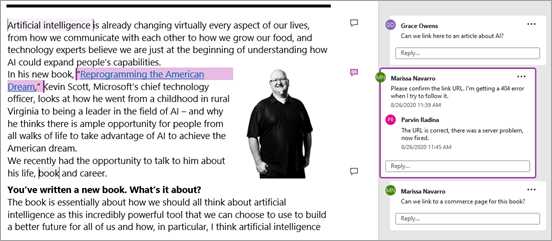 Создание комментария в документе Word
